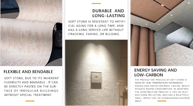 Features: Thin and flexible, good visual effect, multiple colors available, low carbon and environmentally friendly, strong durability Design concept: circular economy, energy saving and low carbon, rational utilization of resources. Applicable scenarios: business spaces, office buildings, large shopping malls, schools and hospitals, creative parks, residential villas, cultural squares, etc. Soft porcelain franchise: foreign trade export, project cooperation, franchise operation, foreign agency Material and production process: Soft porcelain star diamond uses inorganic mineral powder as the main raw material, uses polymer discrete technology to modify and reorganize the molecular structure, and low-temperature microwave molding to finally form a lightweight decorative material with a certain degree of flexibility. The product has a fast production cycle and good effects, and can replace traditional decorative building materials such as ceramic tiles and paints on the existing market. |  |